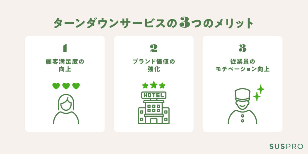 ターンダウンサービスは、お客様に特別な就寝体験を提供するとともに、ホテル経営にも大きなメリットをもたらします。